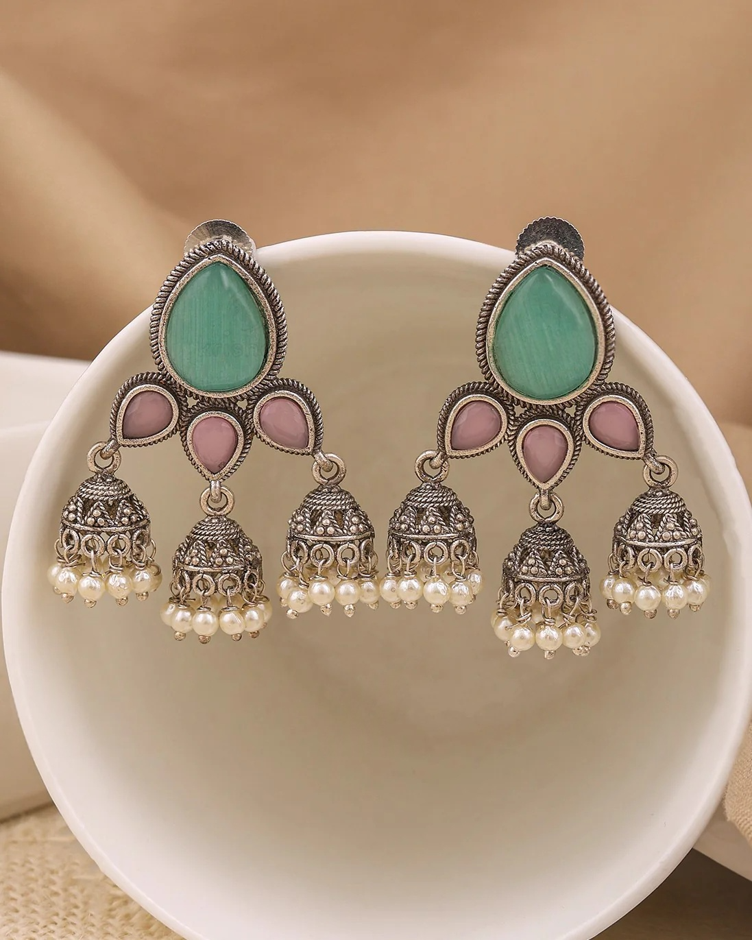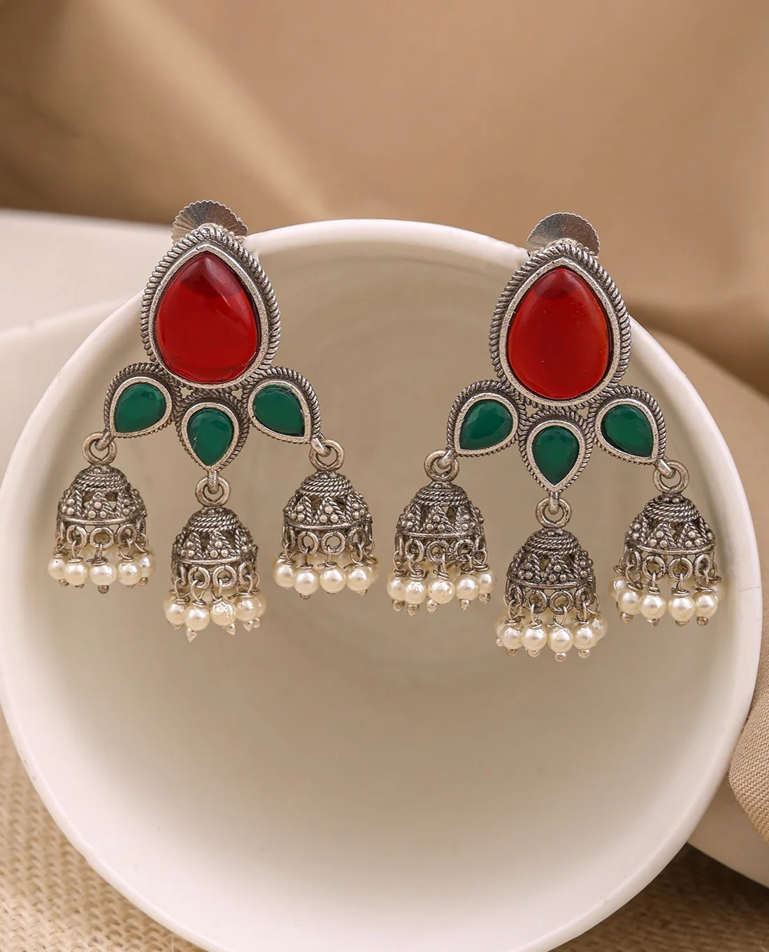 This set of three jhumki-style Traditional Danglers features intricate craftsmanship, lightweight comfort, and festive charm, adding cultural elegance and modern flair to any outfit for any occasion.