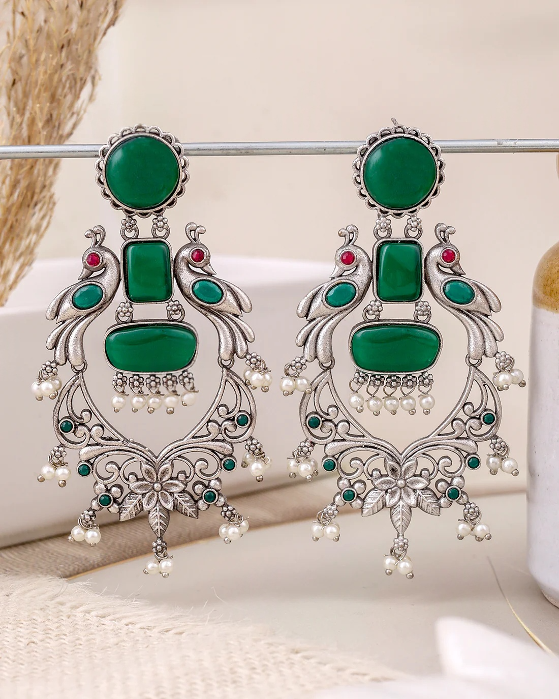 These Pushpa Dangler Earrings showcase a stunning silver look-alike design that effortlessly combines elegance and versatility. Expertly crafted with attention to detail, they feature a long, graceful silhouette that adds a striking touch to any outfit. Perfect for festive occasions, weddings, or even casual gatherings, these earrings bring sophistication and charm to your ensemble. Lightweight and comfortable, they are easy to wear all day while making a bold style statement. Their timeless design complements both traditional and contemporary outfits, making them a versatile addition to any jewelry collection. Elevate your style with these beautiful, must-have dangler earrings.