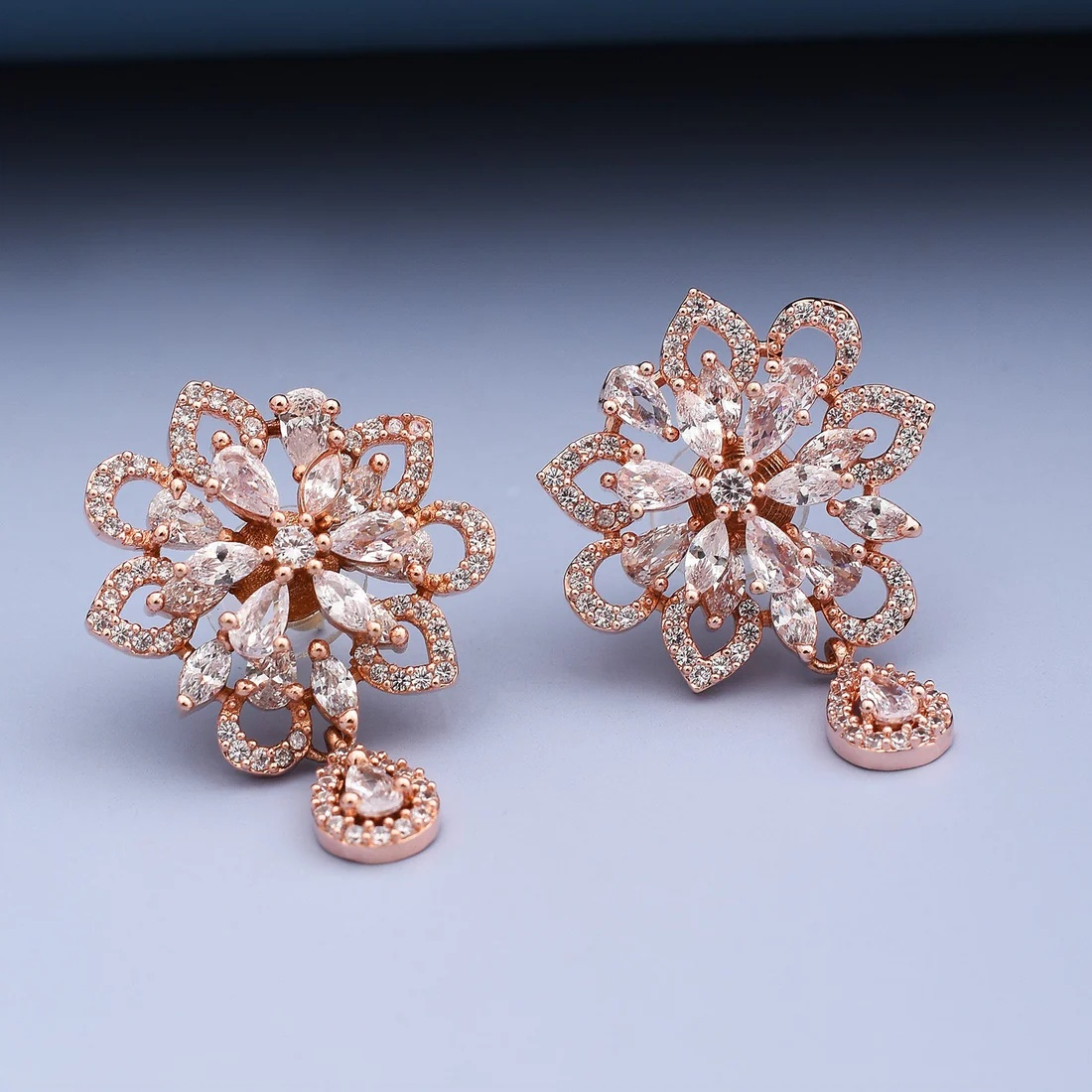 Stacy Rose Gold Small CZ Dangle Earrings feature a chic bell-shaped charm, sparkling stones, and a warm rose gold finish, offering elegant, modern style perfect for elevating any look.