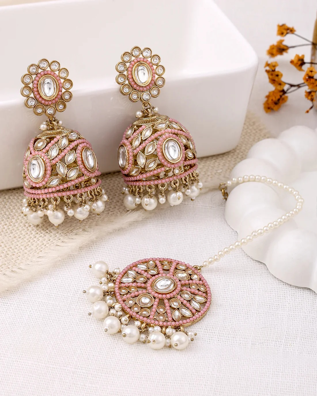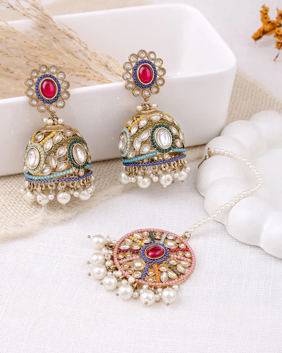 ruksana pakistani kundan jhumki earrings with mangtikaRuksana Pakistani Kundan Jhumki Earrings With Mangtika