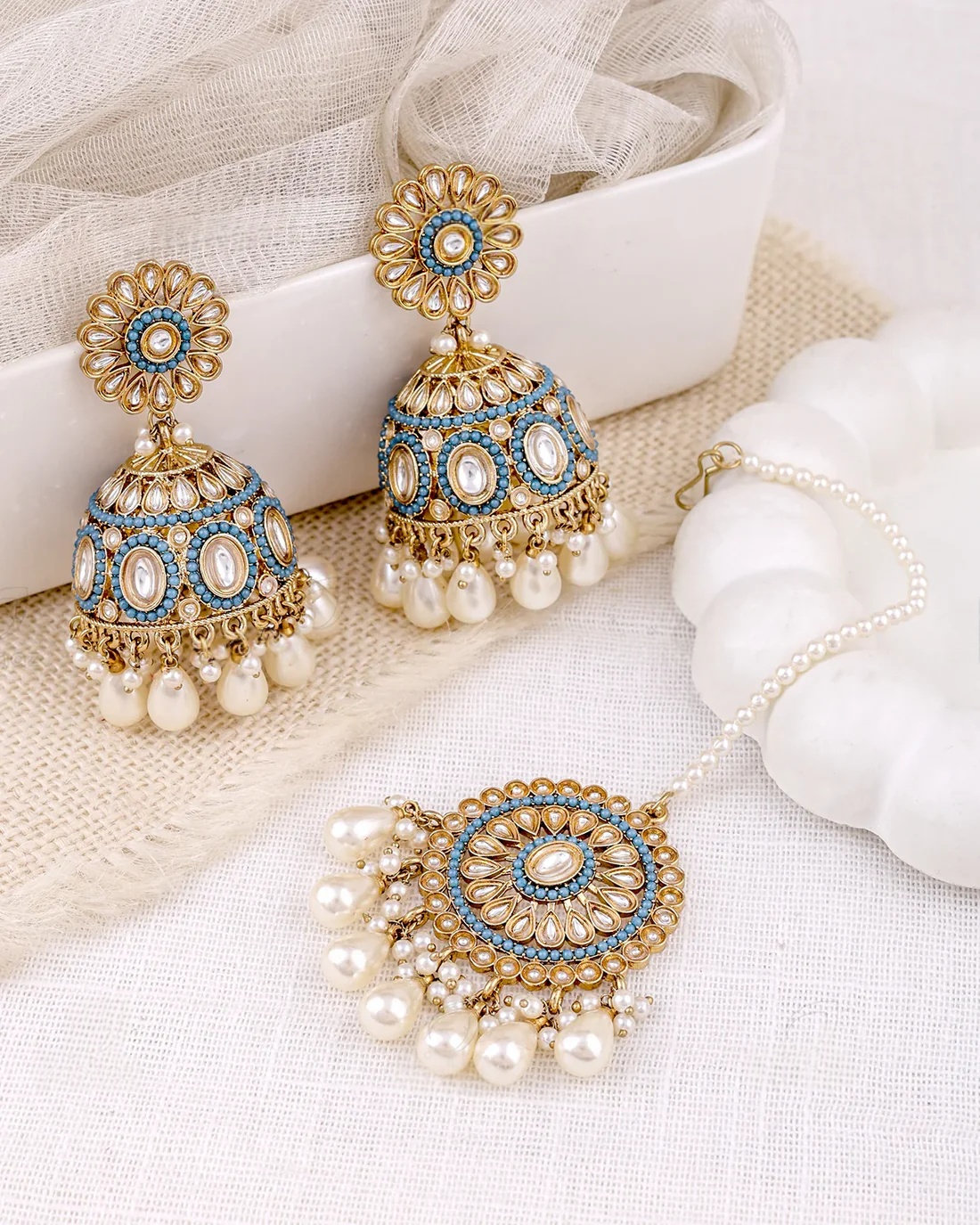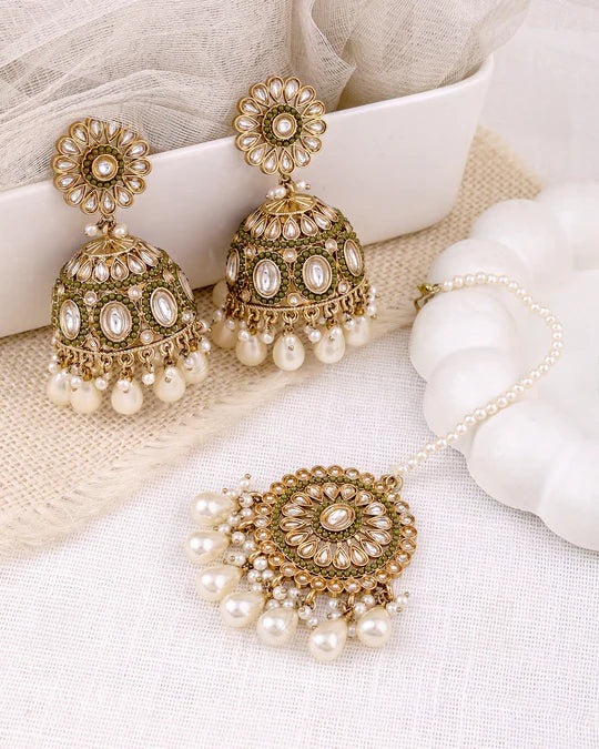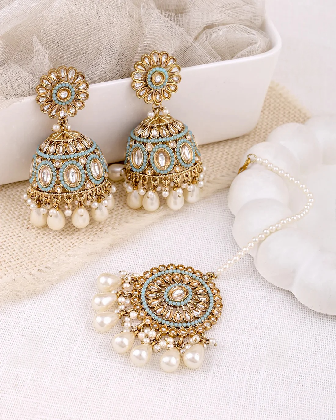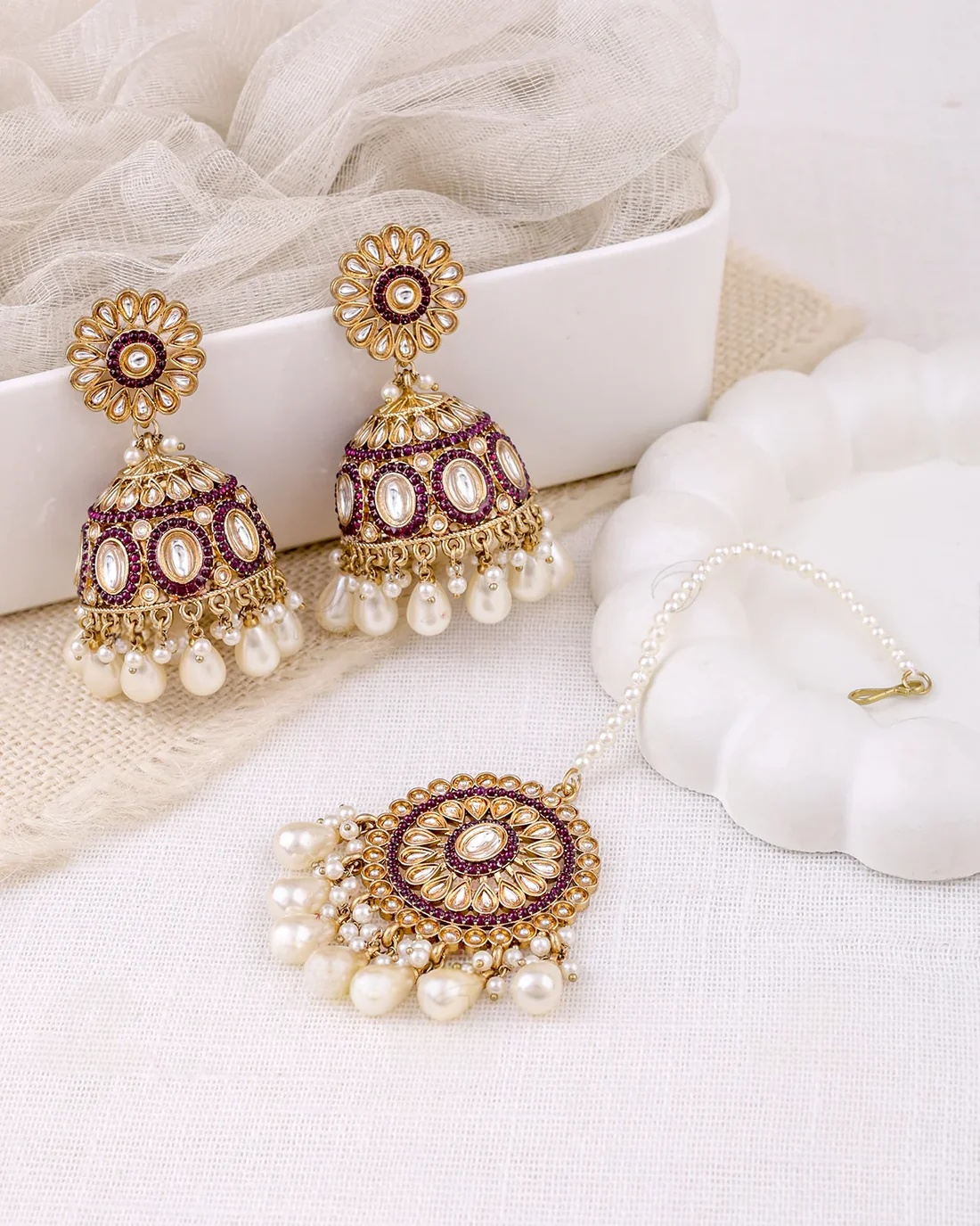 Samira Pakistani Kundan Jhumki Earrings With Mangtika