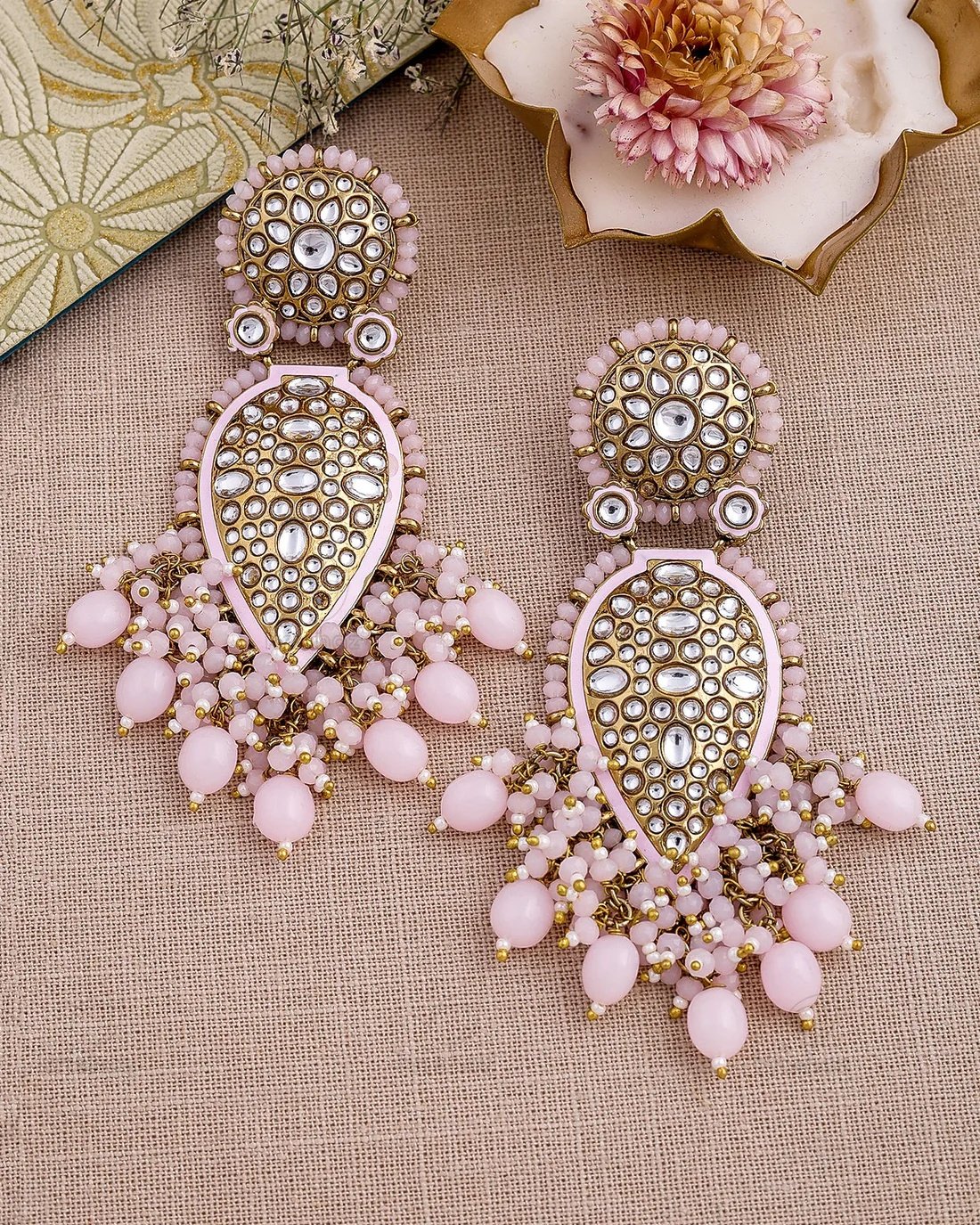 Add a touch of elegance and sophistication to your ensemble with Trushti’s Kundan Dangler Earrings. Expertly crafted with intricate kundan detailing, these earrings shimmer beautifully, catching light from every angle. Their graceful design makes them perfect for formal events, festive occasions, or a stylish night out, effortlessly elevating any outfit. Lightweight yet striking, they provide both comfort and a bold fashion statement. A versatile accessory, these danglers blend traditional craftsmanship with contemporary charm, making them a timeless addition to your jewelry collection. Upgrade your style and let Trushti’s Kundan Dangler Earrings bring sparkle, grace, and sophistication to every look.